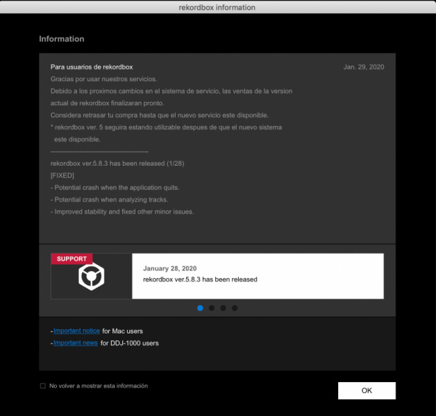 La noticia saltaba desde las redes sociales de Teo Tormo y poco después, los usuarios que hayan abierto ayer y hoy Rekordbox se han encontrado con un texto en la ventana de información de la aplicación de Pioneer DJ como mínimo intrigante. En dicho texto se puede leer lo siguiente: