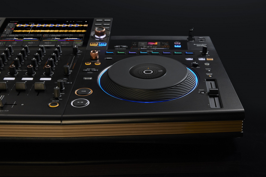 [Índice]Lo que más llama la atención a primera vista de este Pioneer Opus-Quad es su diseño, con ese aire vintage con formas redondeadas nunca vistas antes en los productos de Pioneer DJ.