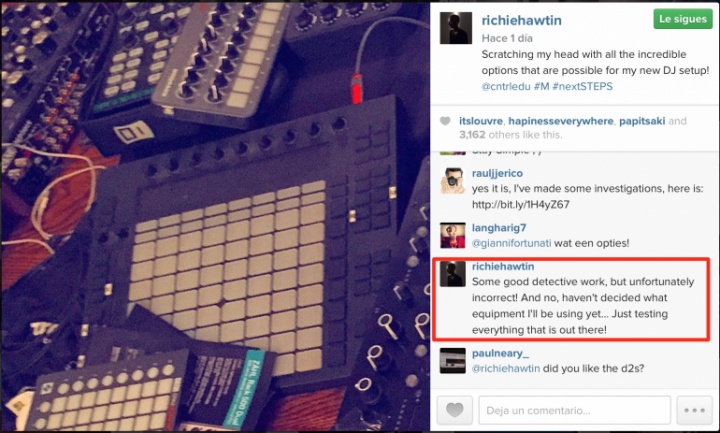 En dicha labor de investigación, el foro de Hispasonic ha destacado y mucho. El hilo “Xone:93C a la vista” creado y mantenido al día por el hispasónico Jeri Jarko ha reunido desde el año pasado las evidencias que han ido apareciendo en la red acerca del misterioso producto en el que trabaja Hawtin. Tal ha sido su interés que incluso el propio Hawtin le felicitó en Instagram por su labor detectivesca –rauljerico en Instagram es Jeri Jarko en Hispasonic– :