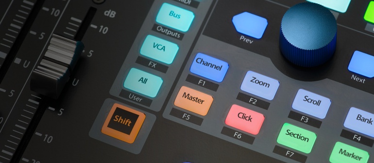 En varias funciones el sistema de FaderPort parece dar un paso más lejos que algunas opciones similares del mercado, comenzando por su sistema por colores y su control basado en botones para hasta ocho funciones fundamentales del proceso de producción, incluyendo zoom, control de canal, control maestro, transporte, buses, VCA, entre otros, agregando también cuatro botones programables a funciones determinadas según el flujo de trabajo de cada usuario.