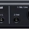 Compatible con Windows, macOS, iOS, Android y Chrome OS, la AudioBox GO monta dos entradas de audio: la primera, una entrada combo XLR/TRS con preamplificador PreSonus XMAX-L y alimentación Phantom; además de una segunda entrada de línea TRS compatible con guitarras y bajos, ambas con su control de ganancia independiente y situadas en la parte trasera de la interfaz, junto a dos salidas de audio TRS balanceadas (algo poco habitual en las interfaces compactas de precio contenido, que suelen tener salidas RCA no balanceadas) y el conector USB-C.