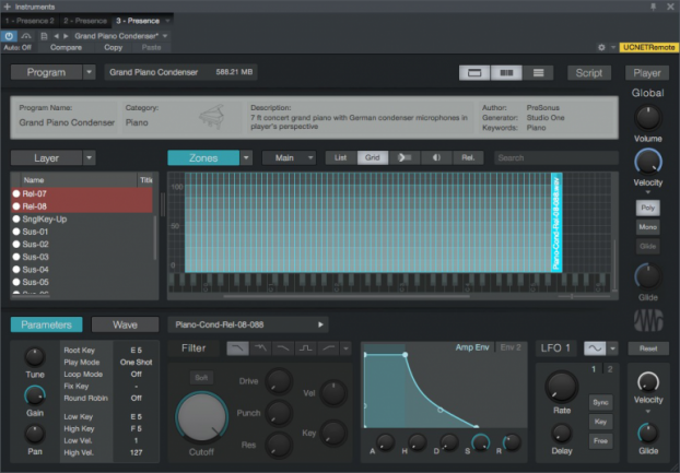 Compatible con Studio One 3.2.2 Professional (la actualización más reciente de Studio One), Presence XT Editor da acceso a los usuarios a la edición profunda con el sampler Presence XT que incluye el DAW de Presonus. El motor de Presence XT usa internamente muestras organizadas en zonas, capas y programas. Pero hasta ahora, el usuario final sólo tenía acceso al retoque de parámetros de un modo muy 'global'.