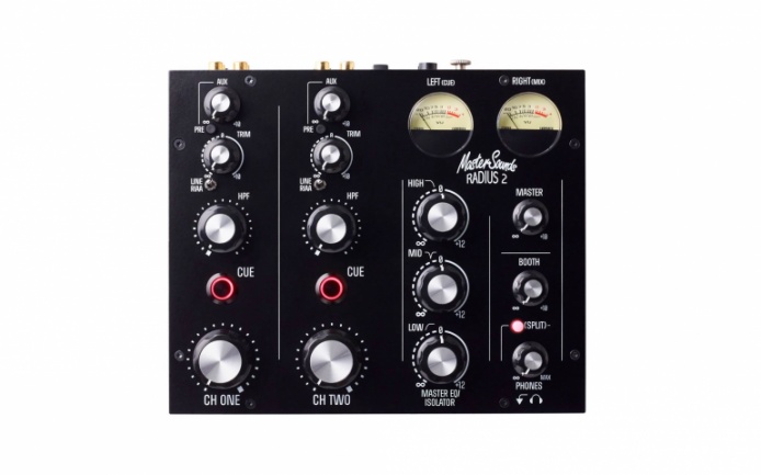 En esta ocasión la colaboración ha sido con Master Sounds, una empresa británica que comercializa productos destinados a amantes del vinilo y que además realiza modificaciones en platos Technics para elevar sus especificaciones técnicas. El fruto de la misma ha sido el Radius 2, un sencillo mixer de dos canales tipo "rotary", con control de ganancia y filtro paso alto por canal, un auxiliar de envío y retorno de efectos, y un isolator/EQ de 3 bandas en el master. Conexiones RCA para las dos entradas por canal y salida balanceada XLR para el máster y RCA para la salida de grabación. Y unos bonitos vúmetros analógicos de aguja. Nada más.