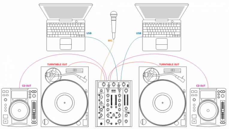 - Doble puerto USB para ser empleado con dos ordenadores /DJs simultáneamente.