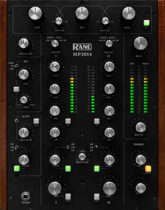 Y es que es totalmente cierto, el MP2014 que se expone esta semana en el NAMM y que Rane comienza a promocionar es una MP2015 de dos canales, pero manteniendo la misma estética retro –paneles laterales de madera, panel superior de acero en acabado oscuro y grabados con láser–, controles rotatorios metálicos de extremada suavidad y precisión –hasta que no la pruebas no te lo crees– y calidad de audio extrema. Veamos algunas características al detalle: