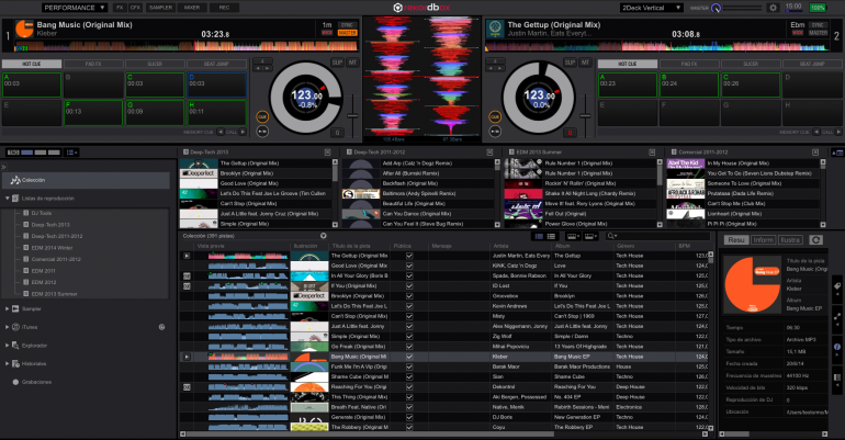 Lo que todavía no está disponible son las expansiones de DVS y de efectos, aunque imaginamos que no tardarán mucho en llegar. El software tiene muy buena pinta y en las pocas pruebas que he podido hacer tiene un funcionamiento muy fluido. Además de las nuevas funciones completas para pinchar, permite al igual que las versiones anteriores de Rekordbox preparar la librería musical –cambiando del modo Performance al modo Export en el menú de la parte superior izquierda– para exportarla a dispositivos de almacenamiento para ser usados en reproductores externos como los CDJ-2000 o los XDJ-1000. Y por supuesto en cuanto nos sea posible os ofreceremos una completa review del software, así que estad atentos.