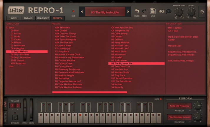 Los pulsadores 'HQ' para modelado de alta calidad y 'zZz' para dormirlo cuando no suenan notas ya hablan de un intenso devorador de CPU. También lo hace la recomendación de contar con una CPU 'moderna' (de arquitectura Sandy Bridge o más reciente). A cambio, U-he promete con su Repro-1 un modelo extremadamente fiel del analógico monofónico Sequential Pro-One.
