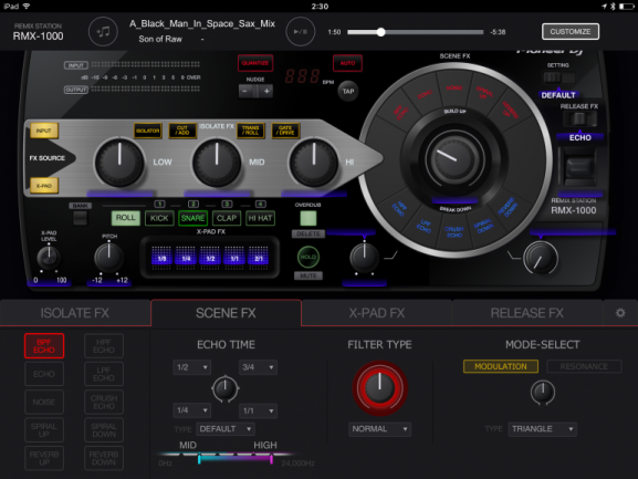 Ahora tenemos igualmente una versión software del RMX-1000, pero en formato de aplicación para iPad y a un precio introductorio de 9,99€ hasta el 11 de noviembre, fecha en que doblará su precio. En cualquier caso, teniendo en cuenta que el hardware costaba 999$ cuando fue lanzado, parece un buen trato.