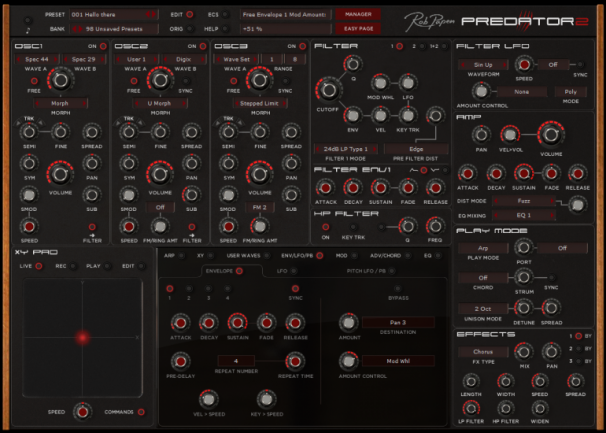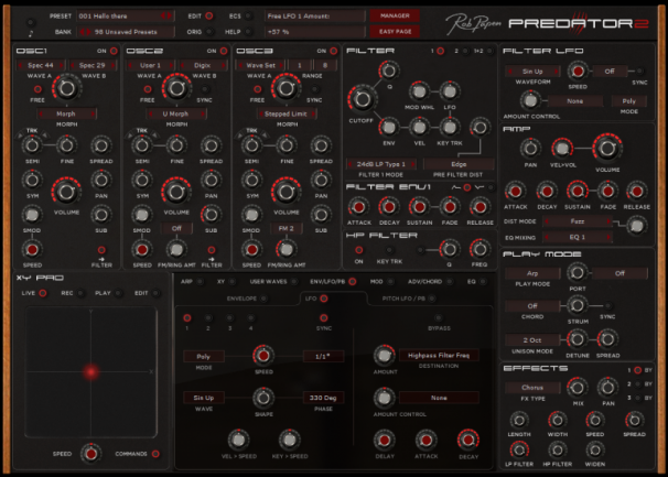 Con casi diez años a sus espaldas, Predator ha conocido ya algún que otro ‘upgrade’, pero en esta ocasión se trata de una nueva versión del monstruo 'depredador' de Rob Papen con paso a un 2.0 que implica 50€ para los usuarios registrados de la anterior y que cuesta 150€ para nuevos usuarios. Teniendo en cuenta que media un decenio desde la primera, tampoco es algo que podamos criticar en exceso, especialmente ante el importante calado de las reformas. Se trata de un monstruo que encierra en su estómago una amplia colección de recursos enfocados a esa versión de lo sustractivo que en realizaciones digitales puede adornarse con la riqueza de las wavetables y los osciladores personalizables, más amplias dimensiones en número de filtros, envolventes, y otros recursos.