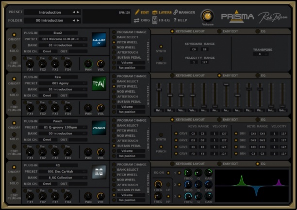 Según se dice, será no un nuevo sintetizador sino una manera de expandir e inter-conectar los ya existentes. Así es, Prisma se presenta como un instrumento capaz de cargar hasta cuatro sintes cualquiera de Rob Papen, ubicándolos en un único plugin, una única fuente sonora.