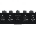- Funciona como mesa de mezclas independiente de cuatro canales, con los canales 1 y 2 conmutables entre phono y línea. Incorpora en la parte trasera la conexión de micro.