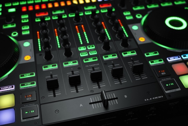 - Controlador de 4 canales, con EQ de 3 bandas y control de para efecto por canal conmutable entre filtro, noise, dub echo y jet.