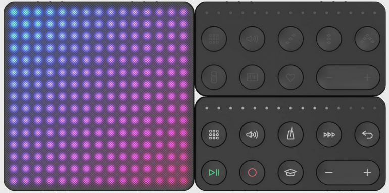 Como los teclados multidimensionales de Roli, Blocks Lightpad ofrece control en cinco dimensiones: velocidad de pulsación y de liberación, presión, y desplazamiento en sentido izquierda/derecha y arriba/abajo. 225 leds multicolor pueblan su superficie y crean distintas vistas para otros tantos modos de ejecución, unos pensados para disparo de notas, otros para percusión, y siempre con acciones ligadas a esas 5 dimensiones, como pueden ser controles de afinación o de timbre en las notas, redobles en las percusiones u otras que establezcamos en Noise.