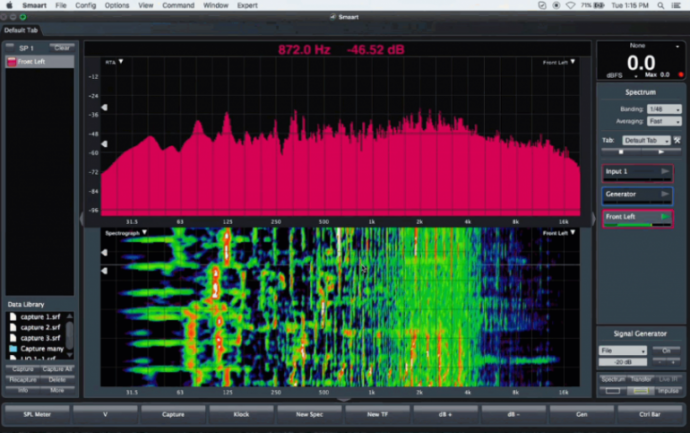 Es capaz de usar la captura de pares de señales 'entrada/salida' (tantos como necesitemos) para mostrar niveles y espectros, duraciones y desfases, automatizar la obtención de la respuesta impulsiva y la respuesta en frecuencia, en definitiva actuando como una herramienta para la diagnosis. Genera las señales de excitación necesarias y captura la respuesta a ellas para obtener representaciones diversas, entre ellas el espectrograma en tiempo real, representaciones espectrales y en el tiempo.