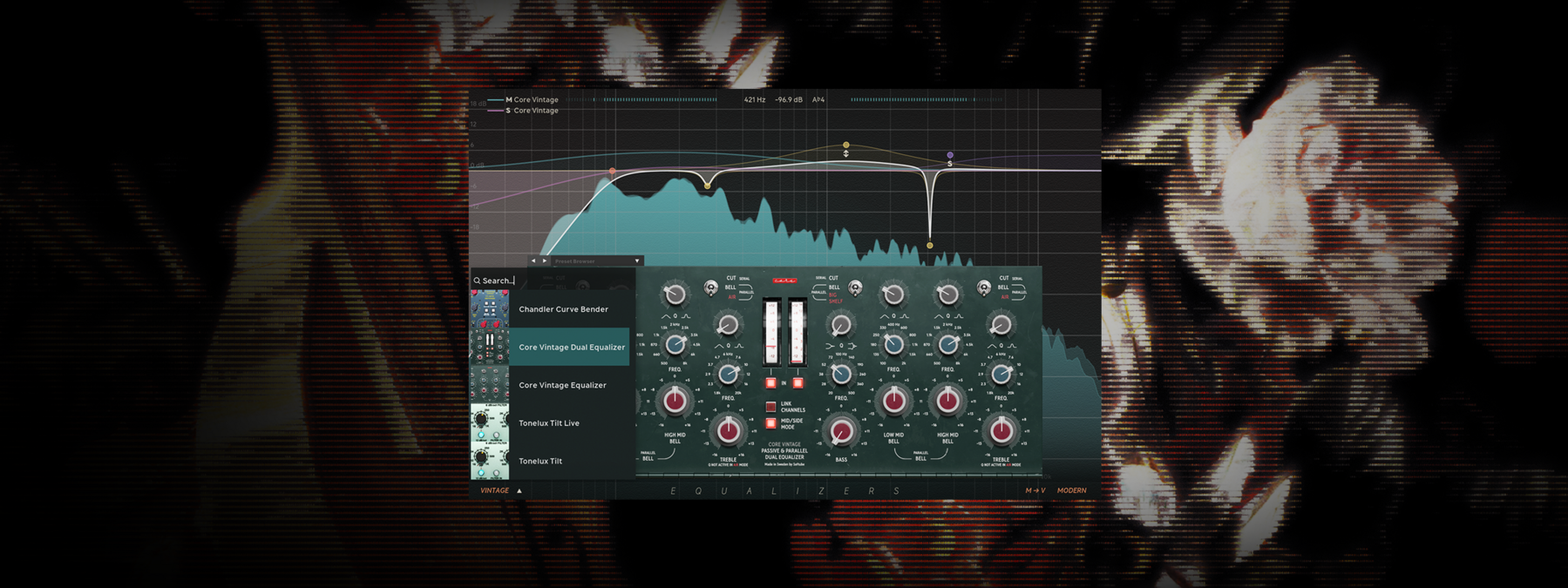 Y también con Core Vintage Equalizers, un nuevo plug-in de EQ en el catálogo de Softube, basado en el modelado de un ecualizador pasivo de bandas en paralelo, orientado a los grandes ajustes, poco selectivos, que ya estaba presente como el modelo Vintage EQ en el entorno Console 1.