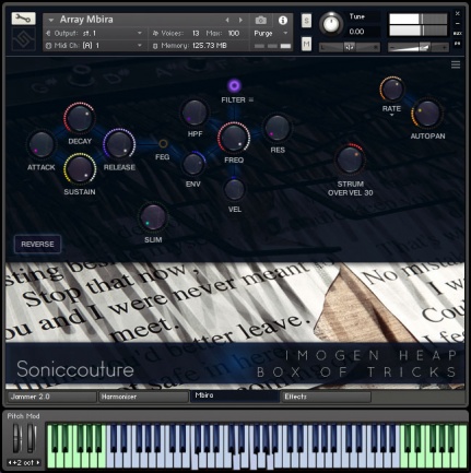 Soniccouture es definitivamente una de las empresas de sampling más creativas, siempre caracterizadas de un impecable registro y programación sonora. Y que mejor alianza podría hacer esta grandiosa compañía que con una asombrosa artífice de las curiosidades sonoras como es Imogen Heap, quien comenzó colaborando con Soniccouture para crear inicialmente un instrumento gratuito, pero tras tres años de intercambio y exploración dio lugar a una extensa librería que lanzan hoy, llamada Box of Tricks.