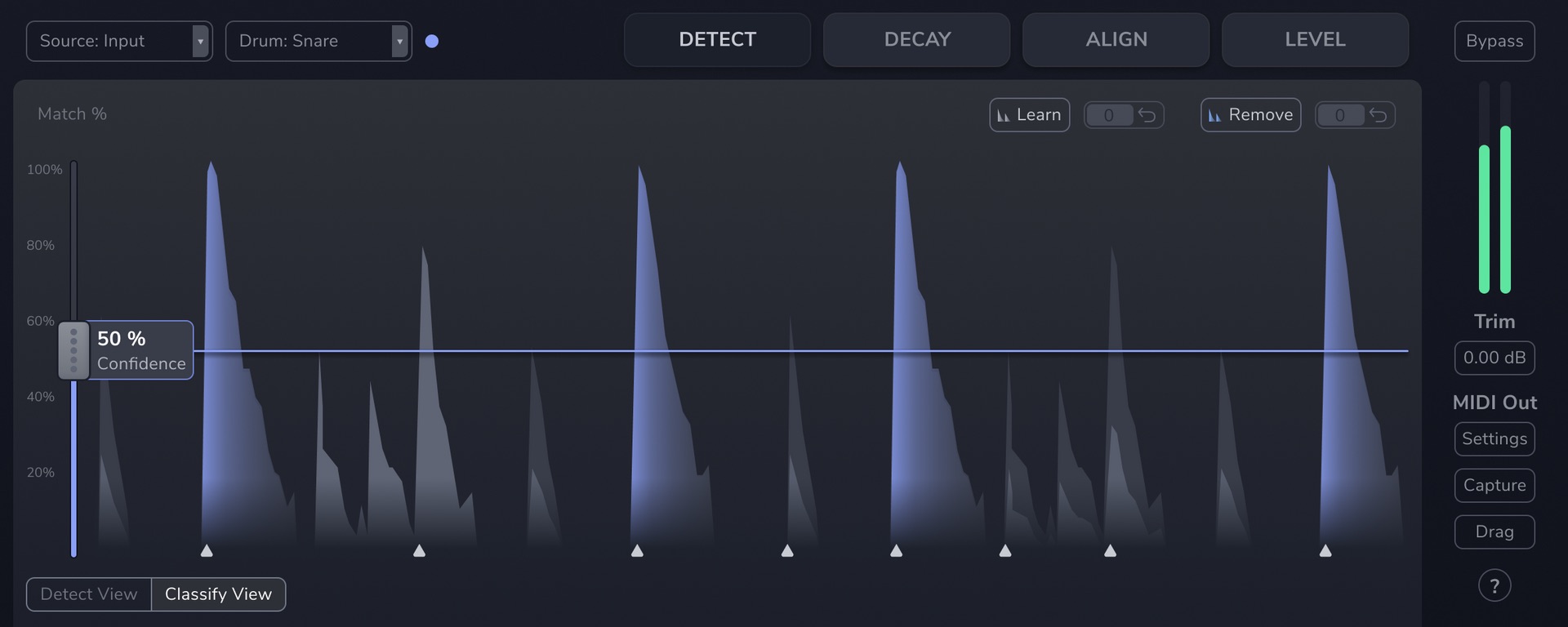 La base tras el plugin sigue siendo la misma, es decir, un sistema de detección inteligente capaz de identificar golpes de bombo, caja, toms o charles con una precisión muy superior a la de un gate tradicional. Pero en esta segunda versión, Sonnox nos dice que ha mejorado de forma notable el modelo de clasificación, ofreciendo una detección más fiable en una mayor variedad de estilos y situaciones de grabación. Lo que se traduce en menos falsos positivos, menos golpes perdidos y un control más musical del resultado.