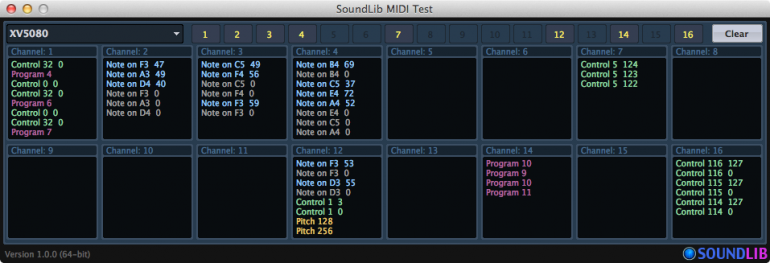 MIDITest es un monitor MIDI que cuenta con la gracia de dividir la presentación de los 16 canales, una tontería pero que puede ayudar en algunos casos a entender mejor qué está pasando dentro de un enlace MIDI.