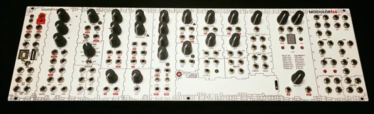 La información se ha ido destilando poco a poco a través del facebook de la italiana Soundmachines, anunciando la presentación de Modulör114 en Superbooth. Modulör114 reúne un juego de módulos cuyo recuento asciende por encima de los 20, pero de desigual complejidad. Desde un simple sumador, un múltiple de 4 conectores, un atenuador, o un control de slew rate, pasando por circuitos S&H, y cómo no llegando a módulos de filtro (multimodo y con salidas simultáneas LP, BP, HP), oscilador con salidas independientes en jack para varias formas de onda y dotado de PWM y sync, lfo, envolvente, mezclador de 3 canales, etc.