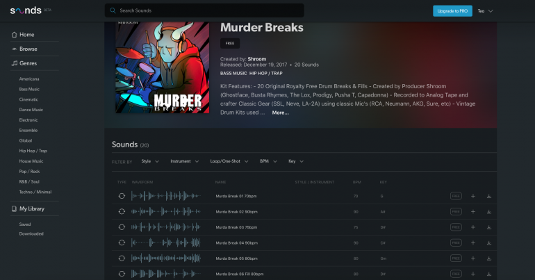 Sounds.com permite descargar sin límite cualquiera de las muestras disponibles en su web si contratas una cuenta premium por 9,99$ al mes, aunque por ahora eso sólo puede hacerse en Estados Unidos; Native Instruments ya ha aclarado que el servicio está en fase beta y se expandirá progresivamente a otros países. Mientras tanto, el resto del planeta podemos entrar a mirar y escuchar lo que ofrecen con una cuenta gratuita de prueba. Native Instruments no ha proporcionado por ahora detalles de los formatos de audio en los que encontraremos las muestras ni su resolución, y como sólo podemos disponer de una cuenta gratuita, desconocemos por el momento las opciones que habrán elegido. Los sonidos podremos encontrarlos clasificados por géneros, instrumentos, tempo o tonalidad, se pueden preescuchar con buena calidad y si no tenemos tiempo para descargarlos podemos seleccionarlos para que pasen a nuestra librería personal y así encontrarlos más rápido para descarga en otro momento.