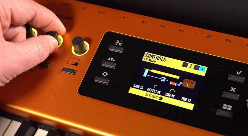 En cuanto al control, el Numa X Piano GT SE está claramente orientado al directo. Su interfaz UX Logic apuesta por la velocidad y la claridad: codificadores por colores, diseño limpio y una navegación intuitiva que permite moldear sonidos, efectos y capas sin perder la concentración. Además, integra audio y MIDI sobre USB y un mezclador digital de cuatro canales mono, lo que facilita gestionar fuentes externas, ruteos y configuraciones de directo directamente desde el propio instrumento.