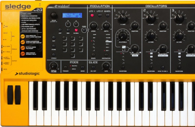 Cosas en el fondo ya conocidas en equipos de la propia Waldorf, que de hecho recuerdan poderosamente a Blofeld. El principal mérito de Sledge es el de disponer de un buen número de controles, destacando los 32 rotatorios, repartidos en unas dimensiones muy generosas que permiten accionarlos con comodidad. Se acerca así, desde una extensión de 5 octavas, a ese ideal analógico de 'un parámetro, un control' que es siempre una garantía de disfrute inmediato y que se ofrecen aquí en versión 'virtual' pero con el amplio terreno que permiten las wavetables configurables a un precio que rondará los 850€ aprox. La conexión MIDI es tanto vía USB como DIN 5 puntas.