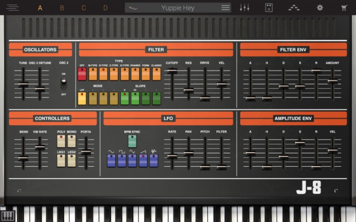 Lejos de ser una reconstrucción mimética de los 38 sintes, en realidad se ofrecen 17 interfaces diferentes que recuerdan en su estética y disposición de controles a los originales, pero que atacan a lo que básicamente es un mismo motor de fondo. Es de esta forma como no debe extrañar ver aquí un interfaz que parece propio de MiniMoog, pero en el que las envolventes son tipo AHDSR, por poner un ejemplo. De hecho, ese mismo interfaz ‘Minimod’ es bajo el que IK Multimedia dice estar ofreciendo sonidos extraídos e inspirados de sintes tan dispares como Modular Moog, Minimoog Model D, y Moog Voyager. Las mismas envolventes que tendremos en el resto de modelos, como el JP-8 que corresponde a los Jupiter 8/6/4 de Roland.