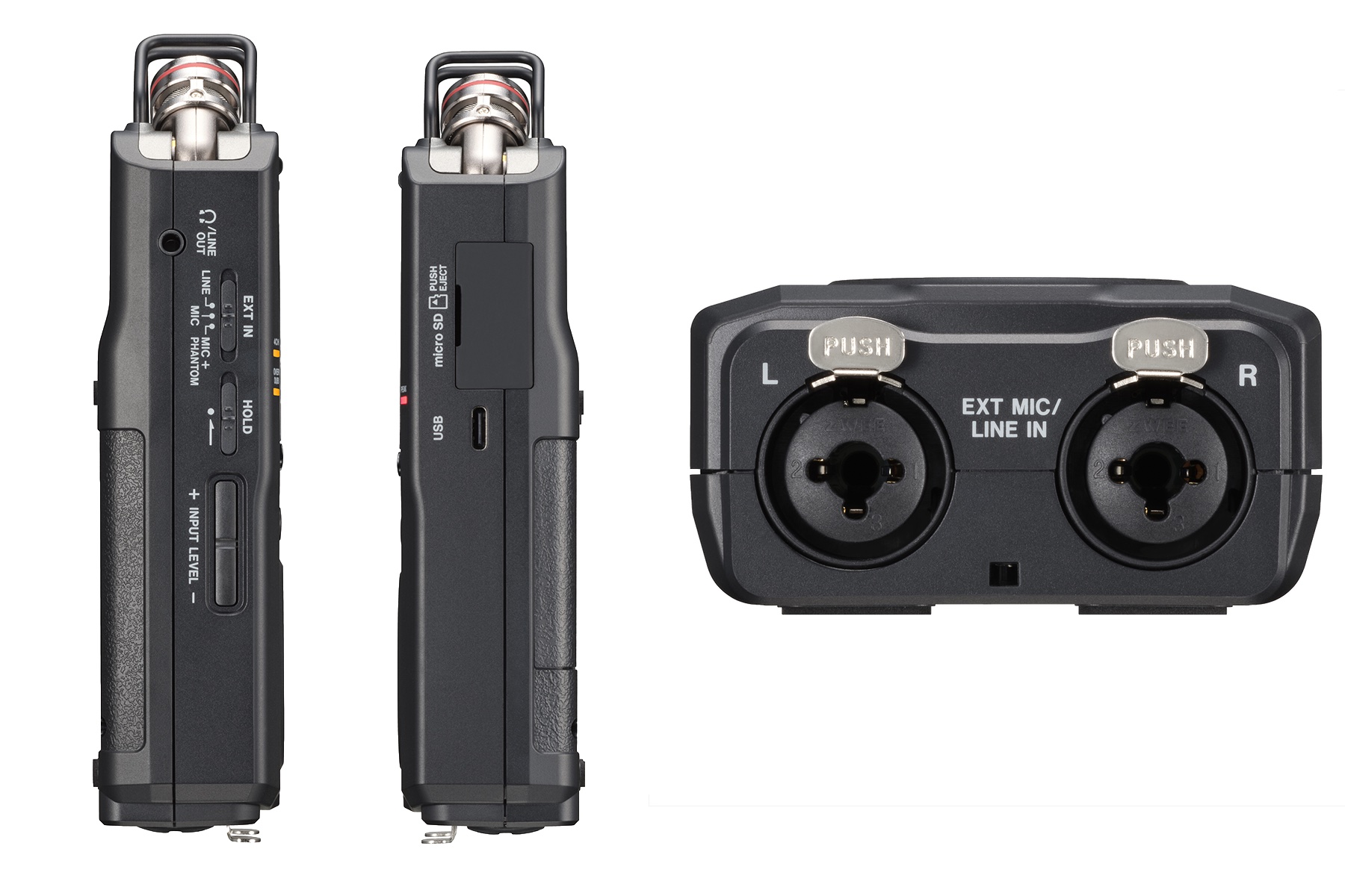 El dispositivo integra entradas XLR/TRS con alimentación phantom de +48 V, que permiten conectar micros externos, mientras que los micrófonos integrados son unidireccionales y ajustables en posiciones A-B o X-Y con un SPL máximo de hasta 125 dB, lo que amplía las posibilidades según el tipo de escena o instrumento. La grabadora incluye funciones pensadas para músicos, como overdub, overwrite, efectos de reverb y un afinador integrado. También puede funcionar como interfaz USB‑C de 2 entradas y 2 salidas, permitiendo grabar directamente en un ordenador o incluso en un dispositivo móvil compatible.