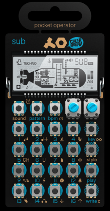 PO-14 añade un sinte para líneas de bajo, nuevamente con 16 sonidos y secuenciador de 16 pasos.