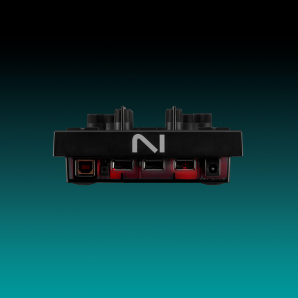 Otra novedad importante es la posibilidad de usar el Traktor X1 MK3 como un hub USB puesto que en su parte trasera incorpora tres conectores USB A, un USB B y una fuente de alimentación externa que el fabricante no aclara en su nota de prensa oficial si es necesaria conectar a la corriente para usar el X1 MK3 como hub.