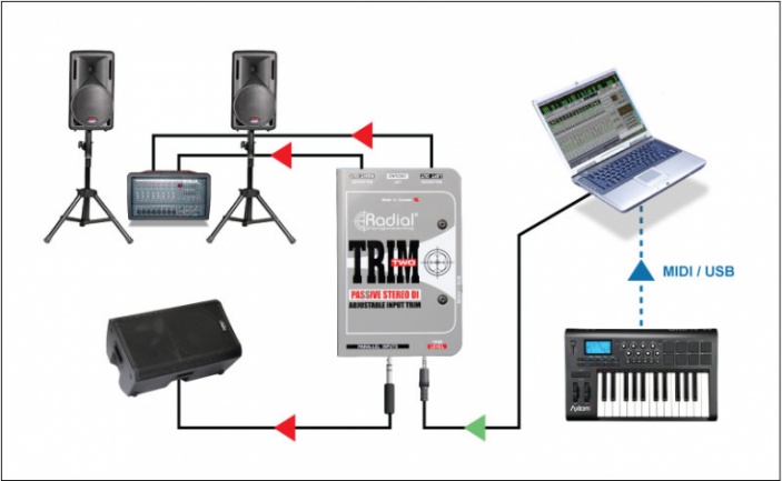 Radial Engineering tiene un amplio catálogo en el que destacan en número las cajas de inyección activas y pasivas. Quizá aterre a los puristas de las DI la idea de incorporar un control de nivel como hacen con Trim-Two, pero para algunas aplicaciones es un añadido bien útil. Es el caso de integrar el audio que sale de ordenadores y tabletas hacia mesas o sistemas de amplificación y PA. Tener un control físico sobre el volumen para salvar cualquier desaguisado es una tranquilidad.
