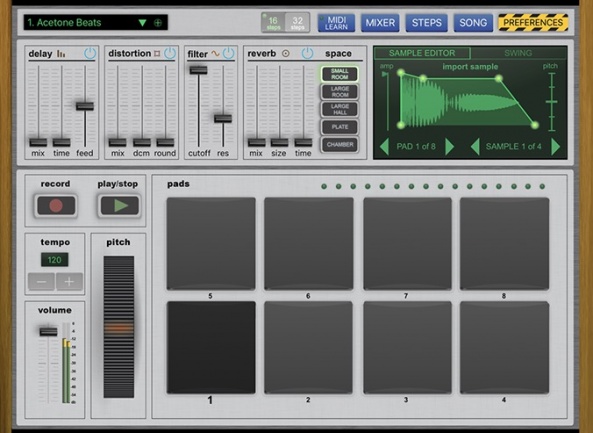 Para los samples se ofrece un editor visual. Todos los parámetros cuentan con implementación MIDI completa. Y como se esperaría en una app de este tipo hoy en día, ofrece varias características relevantes al respecto, como la posibilidad de continuar sonando de fondo e integrarse con Audiobus, Audiobus Remote, Inter-App Audio y Ableton Link.