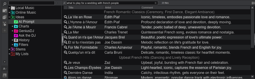 [Índice]Gracias a LLM o Large Language Model, Virtual DJ 2026 integra su propio asistente de IA al cual directamente se le pueden hacer preguntas sobre recomendaciones de estilos o canciones que puedes elegir entre tu biblioteca musical y reproducir al momento.