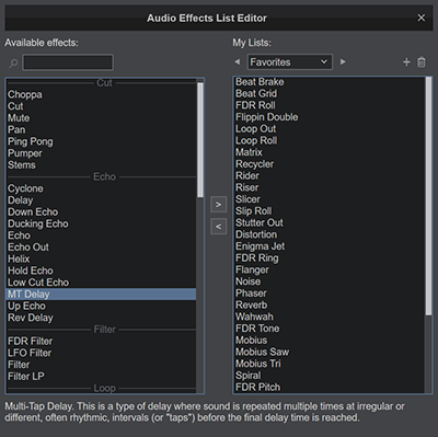 [Índice]A la completa gama de efectos que ya tiene Virtual DJ, su desarrollador le ha añadido más provenientes de mixers como los de Pioneer DJ o los de Rane. En total ahora dispone de 122 FX diferentes.