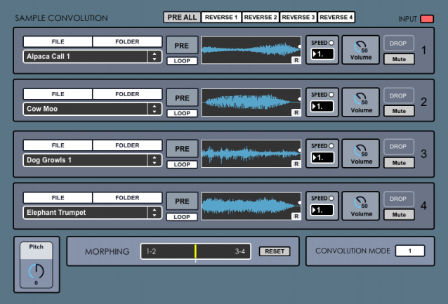 La aplicación permite cuatro entradas de audio, incluyendo dos entradas de micrófono con filtro pasoalto para cada uno, un reproductor de archivos sonoros con control de velocidad y posibilidad de loop, y anexo a ello un reproductor de instrumentos VST que soporta plugins VST/AU.