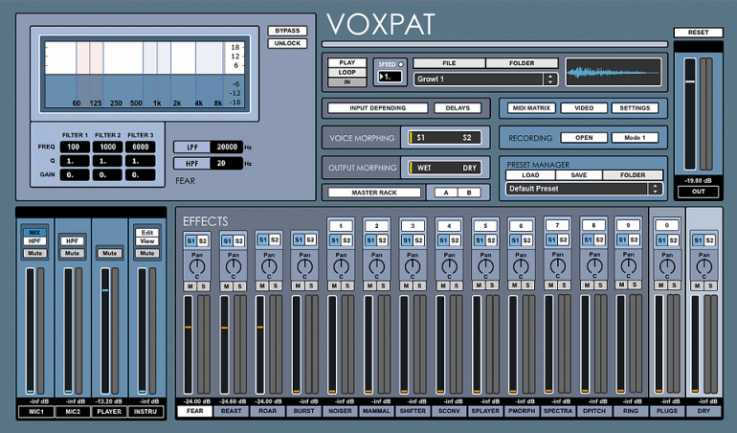 Pensando en este proceso, la gente de Digital Brain ha creado Voxpat, una aplicación creada especialmente para la alteración de la voz, la generación de sonidos de monstruos, criaturas y personajes robóticos, ofreciendo para ello una amplia variedad de posibilidades para generar, procesar y combinar elementos ideados para tales fines.