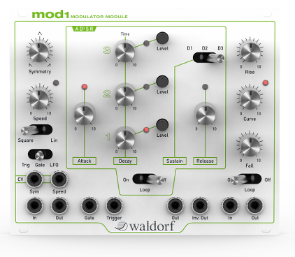 El primero es el modulador mod1, que integra tres fuentes de modulación diferentes en un único lugar, ofreciendo desde envoventes hasta LFOs y curvas multi-estado. Todas se pueden relacionar entre sí y cuentan con varios modos de patching, todo basado en circuitos analógicos.