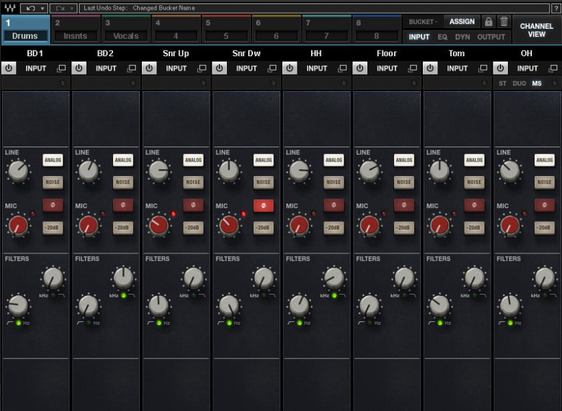 Cada canal cuenta con 5 secciones. Primero encontramos control de entrada con filtro pasoalto y pasobajo, opción de distorsión armónica y modelado del ampli de línea de la consola de Lord-Alge. Luego está la sección de dinámica con dos opciones de compresor y control de gate, sidechain, entre otros típicos de un módulo de este tipo.