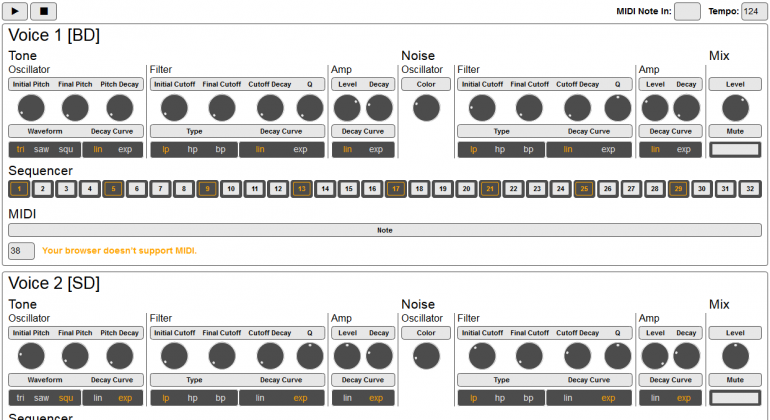 Web Audio y Web MIDI son dos tecnologías que permiten crear aplicaciones audio y aplicaciones MIDI pensadas para su ejecución desde navegadores. Haciendo uso de ellas IrritantCreative, desde Canadá, ofrece Web0X0. Se trata de una aplicación que construye sobre un navegador una caja de ritmos de corte clásico 'a lo Roland' con 4 sonidos y 32 pasos. A diferencia de otras propuestas similares que están apareciendo con WebAudio, no usa muestras, sino que crea los sonidos sintetizándolos.