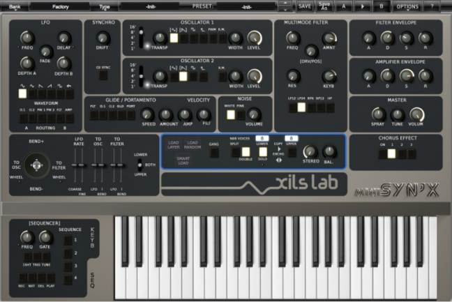 Para los que habéis generado hambre de Synthex tras ese reciente aviso de otro ave fénix más, podéis echar un ojo a miniSyn'X de Xils-lab (45€ hasta mitad de abril que subirán luego a 59), en formato AAX, AU, RTAS, y VST, tanto Mac como Win. Es un paso curioso tanto hacia atrás como hacia adelante, respecto a una versión sin 'mini' llamada Syn'X (169€) que ya existía con anterioridad en el catálogo de Xils. Tiene respecto a su antecesor algunas mejoras en los procesos internos y en la adición de algunos parámetros, pero mientras Syn'x iba más allá que el propio Synthex y llegaba a ofrecer ocho capas de sonidos diferentes combinables, este mini se queda más cerca de las dimensiones estrictas del original.