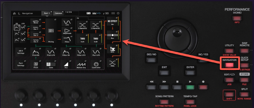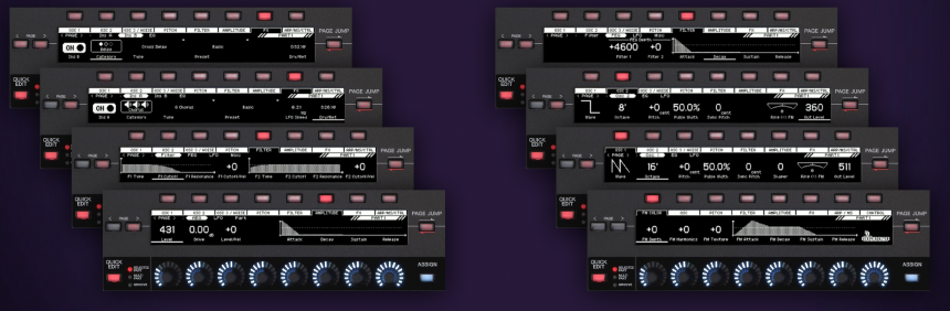 La nueva pantalla secundaria y sus diversos modos de funcionamiento, junto a los botones que la rodean, ofrecen atajos y representación gráfica de los parámetros de los tres modelos de síntesis. Resulta así velocísimo moverse sin acudir al panel táctil por los diferentes módulos (osciladores, operadores, filtros, envolventes, etc.)