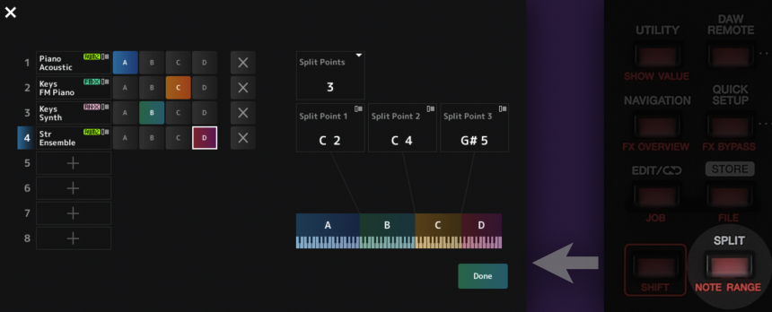 Toda la actividad sobre el propio teclado puede quedar representada en un único canal MIDI aunque haya varios sonidos combinados, y el uso desde el teclado interno puede extenderse a las 16 partes. Lógicamente el SSS (Seamless Sound Switching) sigue siendo entre performances de 8 partes. También siguen siendo 8 los arpegios simultáneos a elegir entre los 10922 predefinidos. De nuevo 8 el total de 'escenas' inmediatamente reclamables dentro de cada performance.