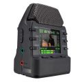 El panel LCD integrado permite saber qué estamos grabando y también informa con vúmetros y señalizadores de pico de los niveles audio. Interesante para músicos, el nivel también se refleja en un led bicolor junto a las lentes que mira hacia donde está la acción.
