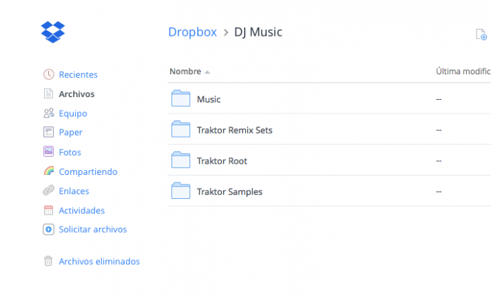 Serato DJ y Traktor pueden funcionar con una librería musical de archivos depositados en Dropbox, si modificas cues de las canciones, beatgrid, editas tags de los archivos… la información se sincroniza perfectamente a cualquier máquina con acceso a la misma cuenta de Dropbox. La pega principal es que la estructura de crates o playlists de la librería la tienes que crear manualmente en todas las máquinas. Esto se debe a que en el caso de Serato DJ no existe la posibilidad de elegir una carpeta distinta a la que crea por defecto el programa para los archivos con la base de datos de la librería, configuración, mapeos MIDI, etc. La carpeta _Serato_ que está dentro de la carpeta Música del sistema operativo es donde Serato DJ guarda todo esto, así que no puedes cambiarlo a una carpeta de Dropbox.