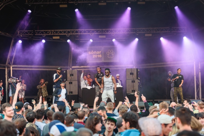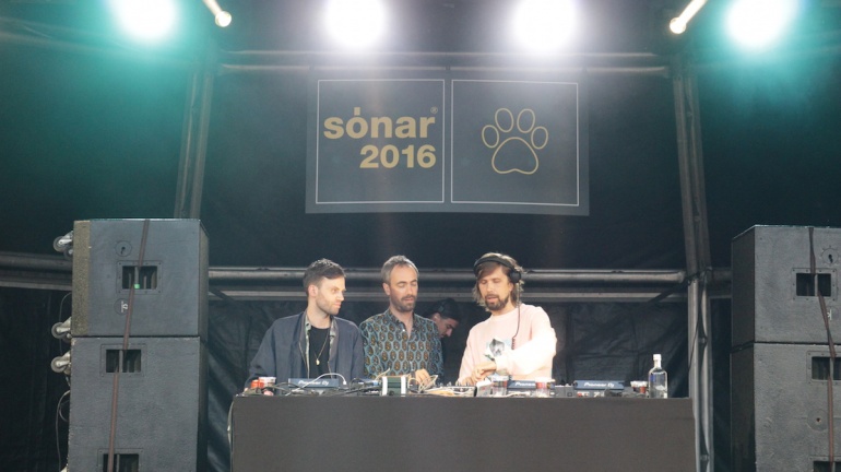 Tras cosas tan serias tocaba reponer fuerzas en el Village mientras escuchábamos la fiesta del trap que los muchachos de Section Boyz tenían montada en el escenario, y digo fiesta porque en ese escenario no paraba de entrar y salir gente y hacerse selfies mientras desparramaban algo de flow. El macarreo del sur de Londres en estado puro para Barcelona. El escenario quedaba vacío a las 21:00 para un trío de DJs a los que tenía ganas de ver en acción: Busy P, Boston Buny y Para One, bajo el nombre de Ed Banger House Party. El sello francés ponía a su capo Busy P –Pedro Winter en el pasaporte, antiguo manager de Daft Punk y Justice– y a dos de sus mejores colegas a amenizar el final del Sónar de día, o más bien a revolucionar: electrofunk housero, disco acelerado, french touch… toda una fiesta en la que la gracia estuvo en una excelente selección muy muy pistera y en unos cambios de ritmo que subían la temperatura de la audiencia.