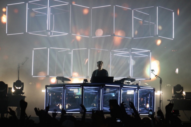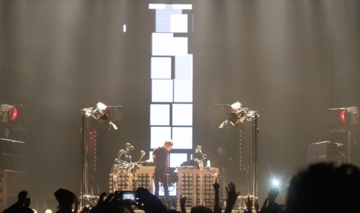 A continuación Flume fue otro de los platos fuertes de la noche, y vaya si fue fuerte. Abarrotó la pista Sónar Pub con un show de sus trabajos disparado con Ableton Live y un APC-40 mediante y un gran controlador de percusión al que se entretenía machacando en los momentos climáticos. El joven australiano que venía a presentar su segundo largo “Skin”, entusiasmó canción tras canción a un público que no dejaba de saltar y abrazarse al escuchar los primeros compases de cada canción y que quedaban estupefactos ante su show audiovisual de proyecciones multipantalla, su montaje geométrico de iluminación y la forma tan acertada que tuvo de llevar el pulso de toda la actuación de future bass con muchos toques pop que desarrolló. El cierre de la actuación con el remix de “You & Me” que hizo para Disclosure y que formó parte de la conocida campaña de Lacoste volvió loca a la audiencia. Sencillamente de 10.