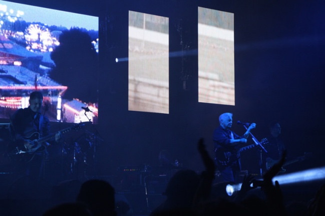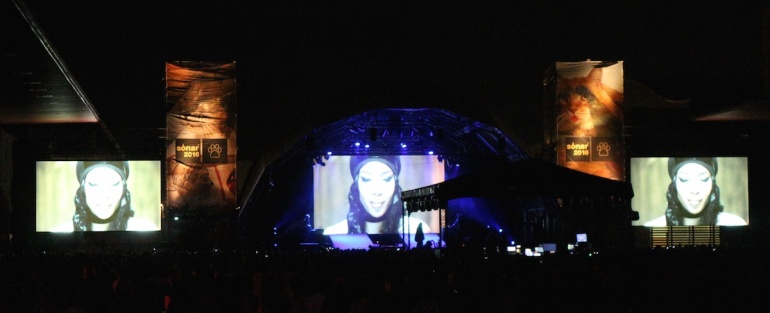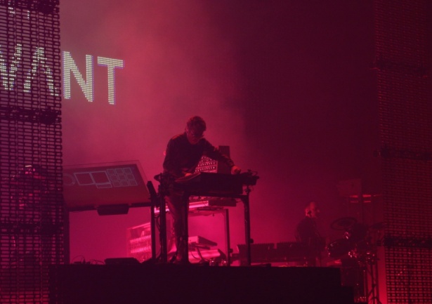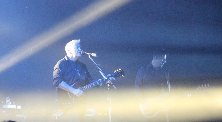 Desde allí literalmente volamos para no perdernos otro de los momentos “nostalgia” que prepara Sónar cada año, el concierto de New Order en el Sónar de noche. Personalmente reconozco que nunca he sido muy fan de New Order, y en mi cabeza siempre han sido “lo de después de Joy Division”, aunque alguna de sus canciones me ha hecho tilín. Y las cosas no cambiaron tras el directo, el señor Bernard Summer ha sido duramente castigado por el paso de los años, y ni su aspecto ni su ejecución escénica parecen ya la de una estrella del pop: estuve cerca de la primera fila, y tengo la sensación de que el hombre en algunos momentos no podía con su alma. Aunque de cara al final de la actuación su voz parecía algo más caliente y se le iba menos, destrozó la afinación de algunas canciones, como por ejemplo en “Bizarre Love Triangle”. El resto de la banda sonaba aceptablemente, con partes electrónicas de sonido “actualizado” y visuales de fondo bastante entretenidas. Para el final hicieron un “falso bis”, se retiraron antes de tiempo pero estaba totalmente planeado volver para tocar “Blue Monday” y “Love will tear us apart” –menos mal–. A pesar de mi disconformidad con la actuación, reconozco que la audiencia quedó ampliamente complacida por el show a tenor de los aplausos y la alegría en las caras, lo cual a fin de cuentas es lo que cuenta. Yo solo pasaba por allí.