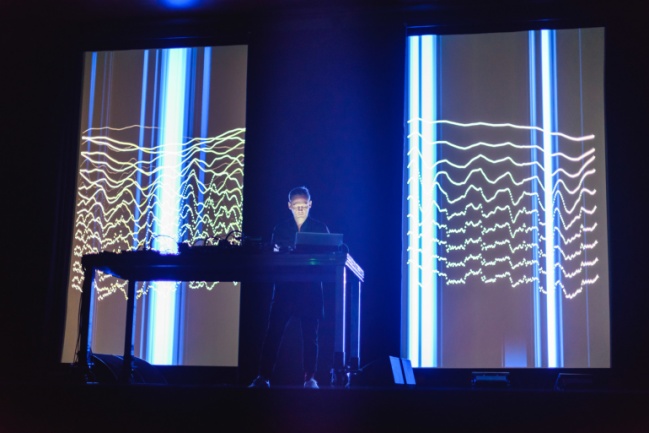 Pero no todo iba a ser la tranquilidad del jazz. A las cinco comenzaba uno de los eventos más esperados, Alva Noto. El alemán venía por partida doble al Sónar dentro del showcase de su sello raster-noton, y levantó una enorme expectación que causó una enorme cola para acceder al recinto Complex; hubo gente que se quedó fuera bastante airada, quizá el escenario Hall de mayor capacidad hubiera sido más adecuado para la actuación. La actuación de Noto fue sencillamente demoledora, si lo de la noche anterior con Hawtin fue techno para masas, lo de Noto fue techno de raíz para entendidos. Nada de los ambientalismos y la contemplación que dejó caer con Sakamoto en la banda sonora de The Revenant, NADA. Su potente descarga sonora plagada de bombos analógicos al límite acompañados de pads asperos, sonidos lacerantes y voces sintéticas te aplastaban contra la butaca, y sus visuales flasheantes y aceleradas te hacían correr el riesgo de morir en el acto si eras epiléptico. Abrumador el show, y abrumador que improvisara un bis con el que se llevó una gran ovación.