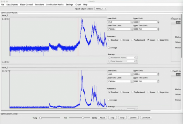 Esto se logra mediante un proceso denominado sonificación, tan popular en la ciencia de nuestros días y utilizado a menudo para asimilar diferentes campos, ondas, manifestaciones vibratorias, etc, como la textura sonora solar en Júpiter que hace poco explorábamos. De esta forma, en lo que parecería una curiosa secuencia MIDI, se puede así estudiar por ejemplo, una explosión de rayos gama del espacio sideral, pudiendo reconocer resonancias características de diversos fenómenos, cambios en intensidad, frecuencia, o distribución de campo, que lo interesante es que no solo presentan una interesante relación con la gráfica visual, sino que además aportan nuevos conocimientos y datos desde el sonido mismo y la posibilidad de escuchar la información espacial.