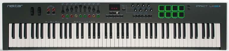 [Índice]Nektar Impact LX88+ no llega a ofrecer todavía un teclado con mecanismo de piano. Básicamente el aspecto, la extensión y ciertamente un peso algo más elevado que el de un teclado ultraligero, pero sin las sensaciones complejas de una imitación piano real. Os remito a lo dicho en la guía de modelos de 61 teclas.